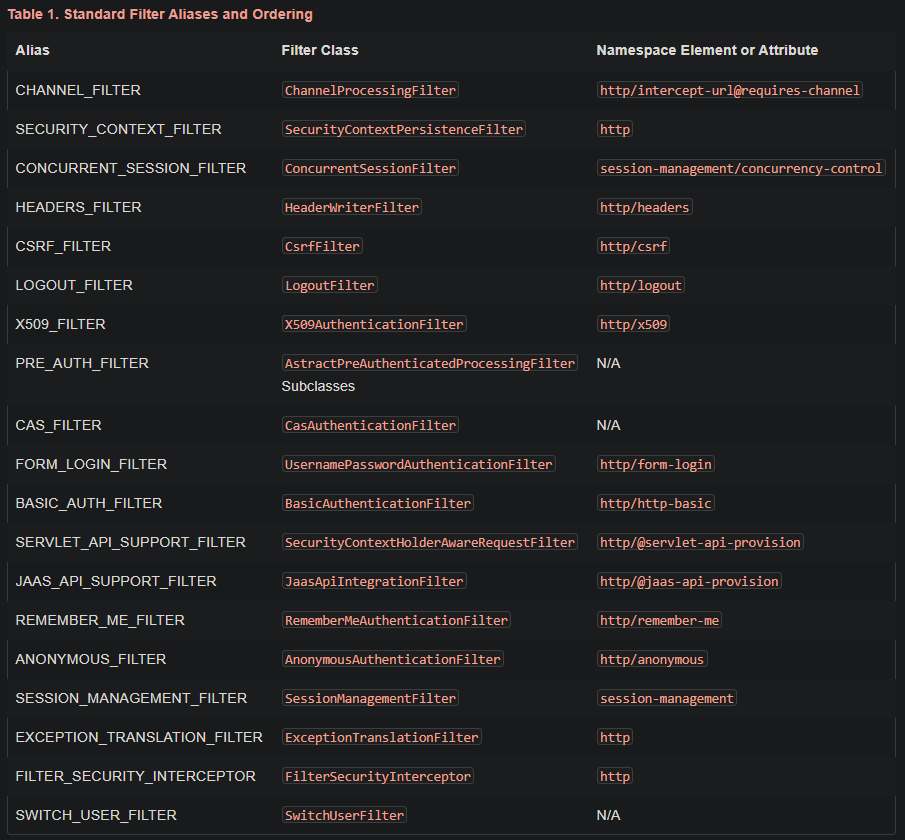 그리고 Spring Security는 다양한 기능을 가진 필터들을 10개 이상 기본적으로 제공한다. 이렇게 제공되는 필터들을 Security Filter Chain(시큐리티 필터 체인)이라고 말한다.